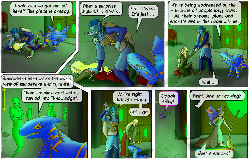 So, if the crystals capture memories, what's Feiht taking with her that remains in the shards? Tis an interesting thought. Waiting to see how it plays out.